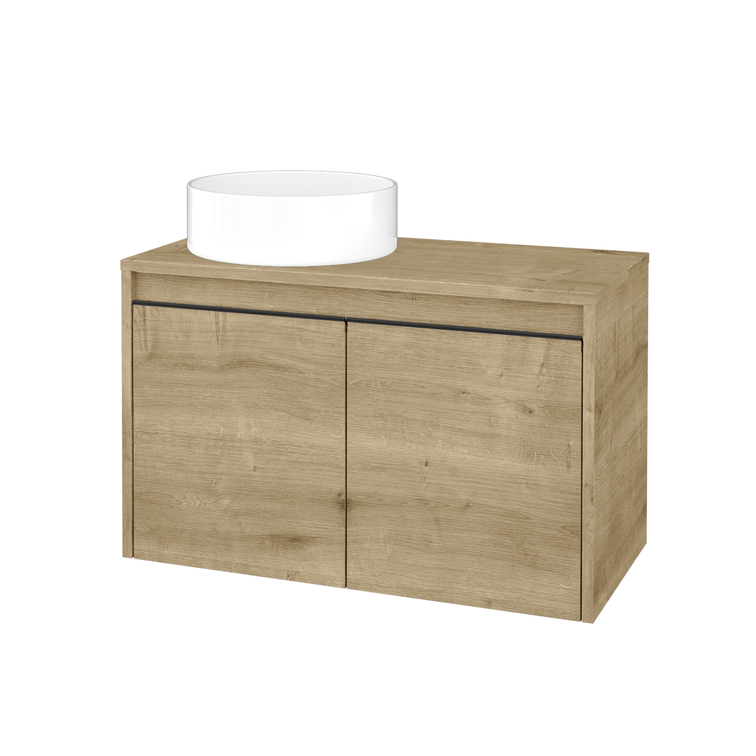 Závesná umývadlová skrinka s 2 zásuvkami s protišmykovými podložkami a keramickým umývadlom…