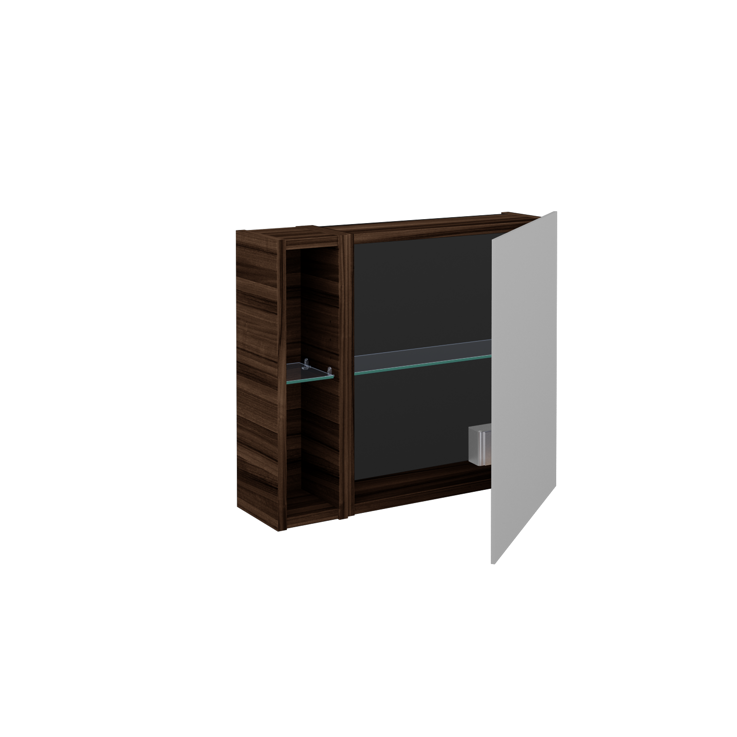Prezrieť katalógJednodverová zrkadlová skrinka (600x530x163) s nikou vľavo a 2 sklenenými policami, vypínačom a zásuvkou Zobraziť viac
