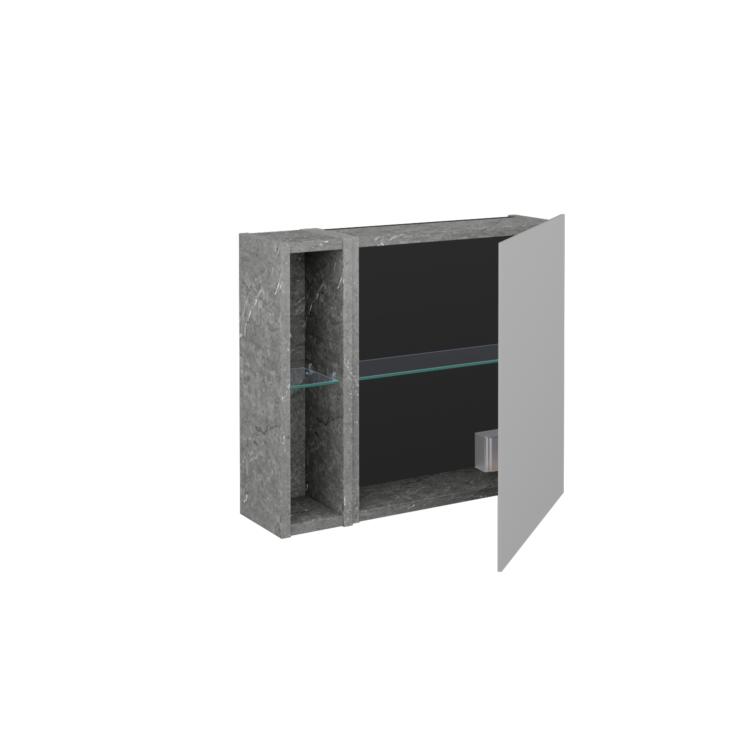 Prezrieť katalógJednodverová zrkadlová skrinka (600x530x163) s nikou vľavo a 2 sklenenými policami, vypínačom a zásuvkou Zobraziť viac