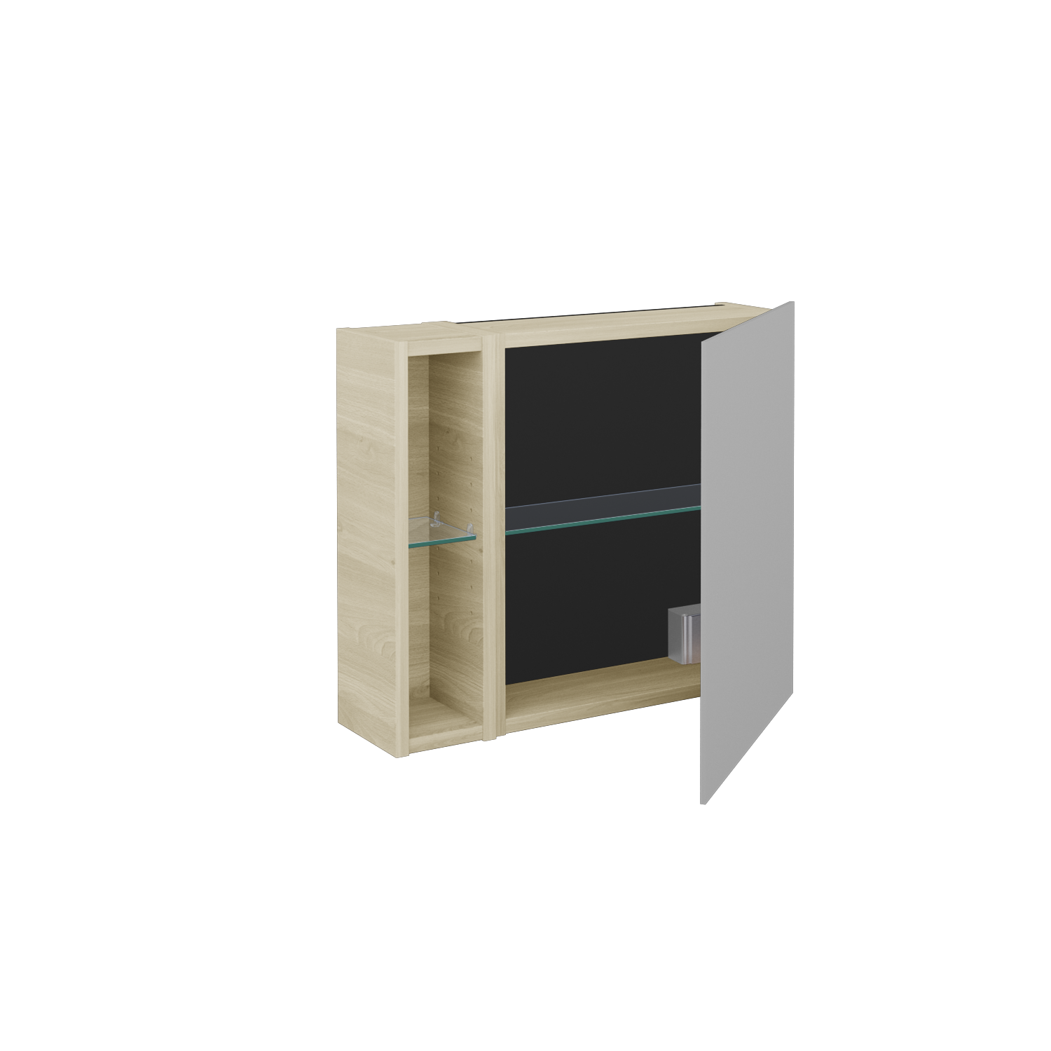 Prezrieť katalógJednodverová zrkadlová skrinka (600x530x163) s nikou vľavo a 2 sklenenými policami, vypínačom a zásuvkou Zobraziť viac