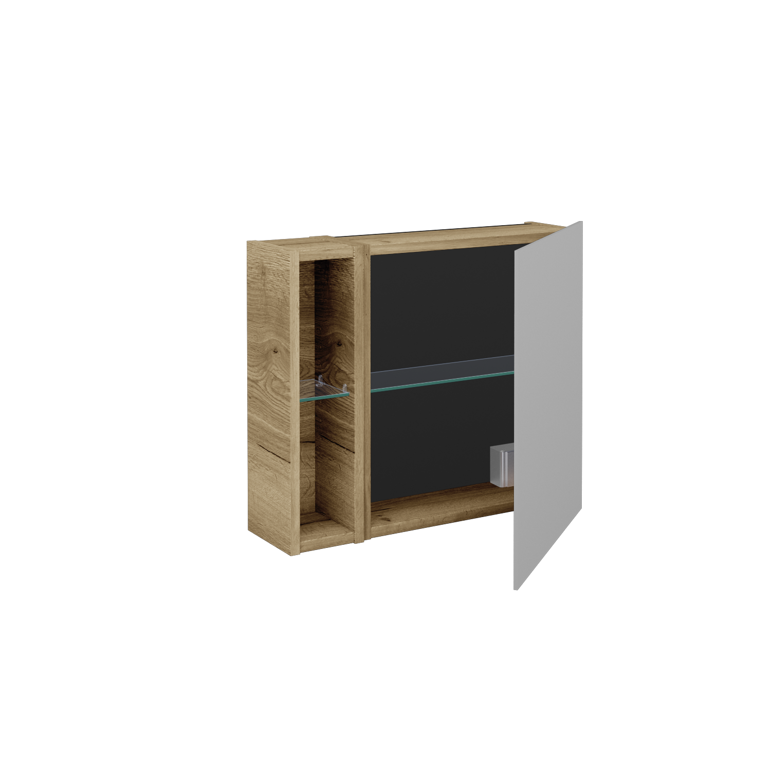 Prezrieť katalógJednodverová zrkadlová skrinka (600x530x163) s nikou vľavo a 2 sklenenými policami, vypínačom a zásuvkou Zobraziť viac