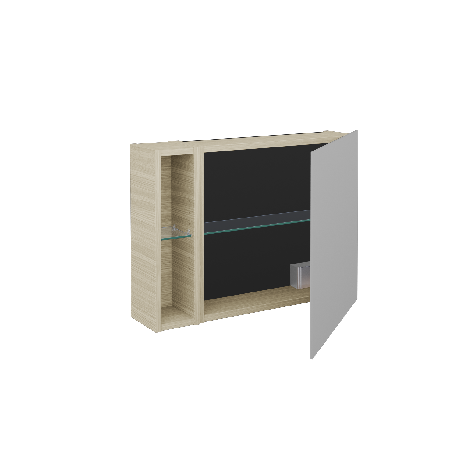 Prezrieť katalógJednodverová zrkadlová skrinka (700x530x163) s nikou vľavo a 2 sklenenými policami, vypínačom a zásuvkou Zobraziť viac