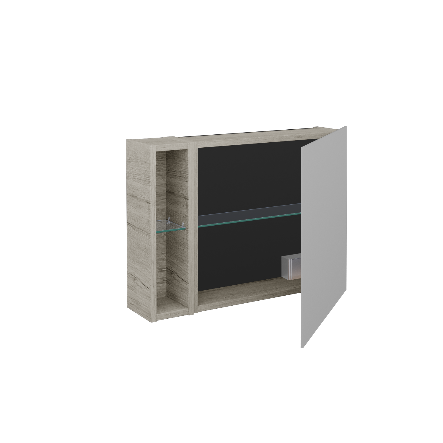 Prezrieť katalógJednodverová zrkadlová skrinka (700x530x163) s nikou vľavo a 2 sklenenými policami, vypínačom a zásuvkou Zobraziť viac