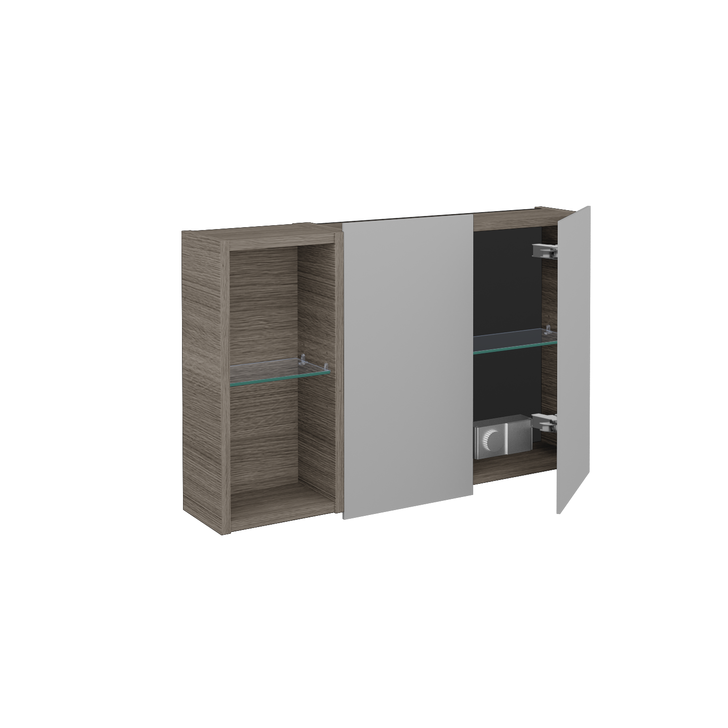 Prezrieť katalógDvojdverová zrkadlová skrinka (800x530x163) s nikou vľavo a 2 sklenenými policami, vypínačom a zásuvkou Zobraziť viac