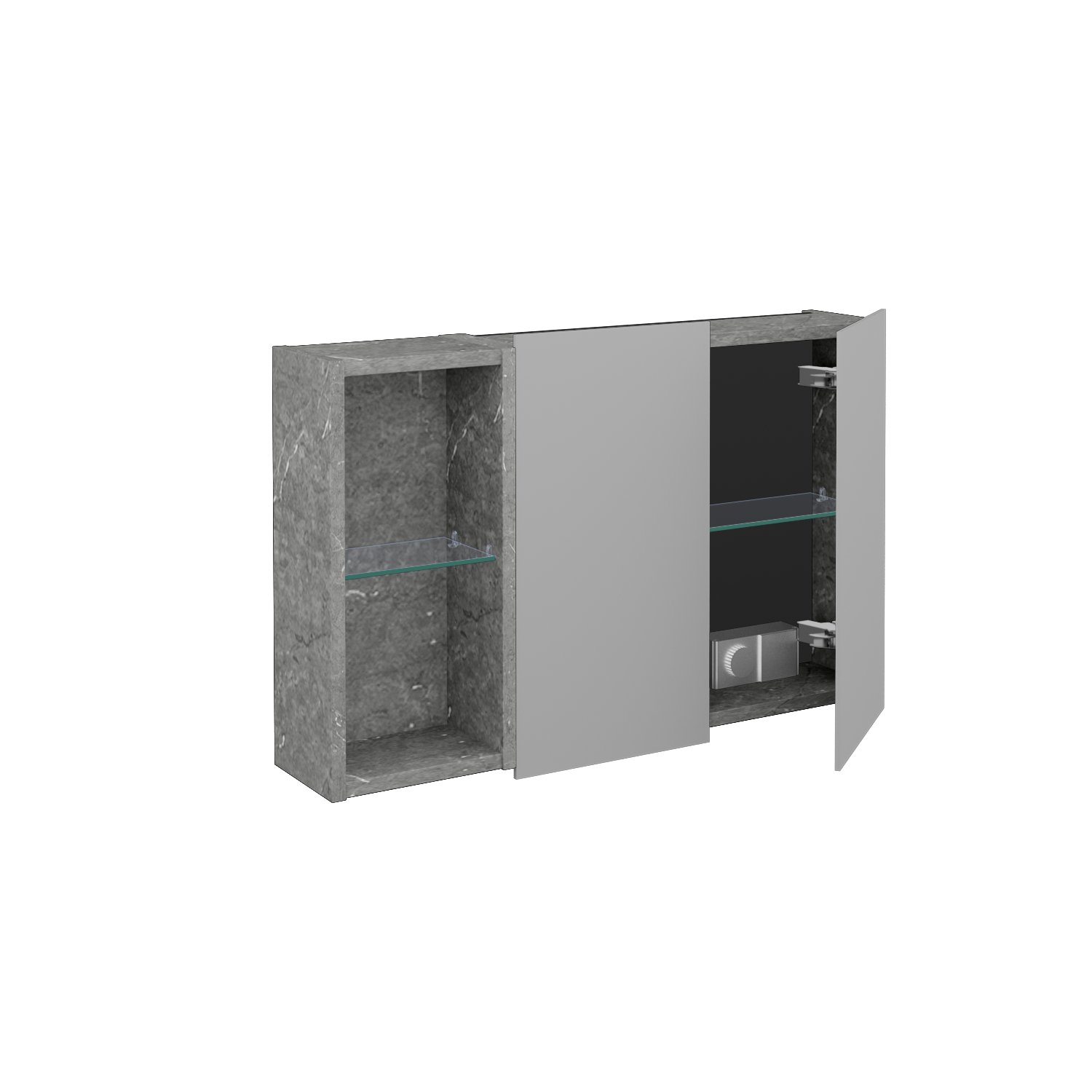 Prezrieť katalógDvojdverová zrkadlová skrinka (800x530x163) s nikou vľavo a 2 sklenenými policami, vypínačom a zásuvkou Zobraziť viac