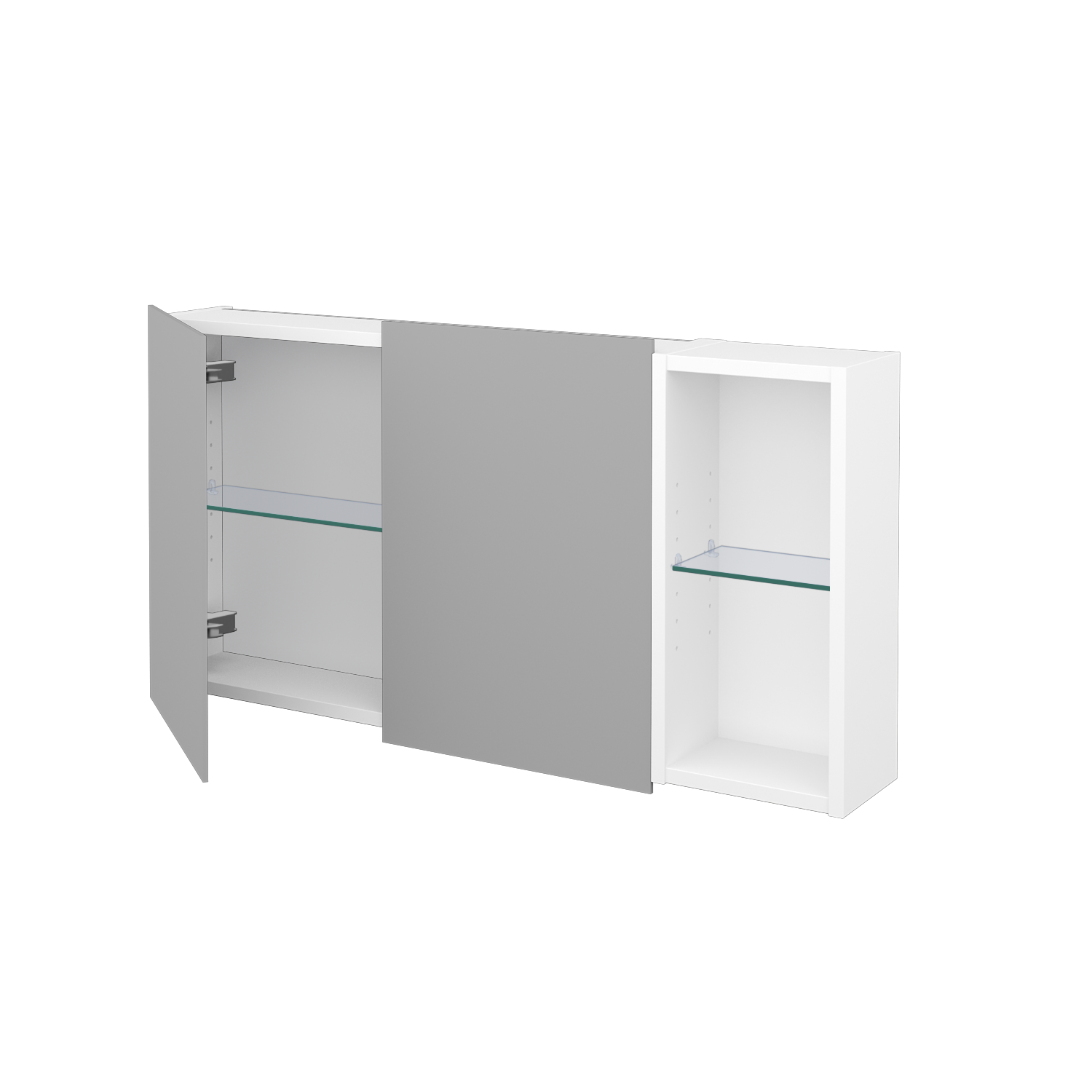 Prezrieť katalógDvojdverová zrkadlová skrinka (1000x530x163) s nikou vpravo a 2 sklenenými policami, vypínačom a zásuvkou Zobraziť viac