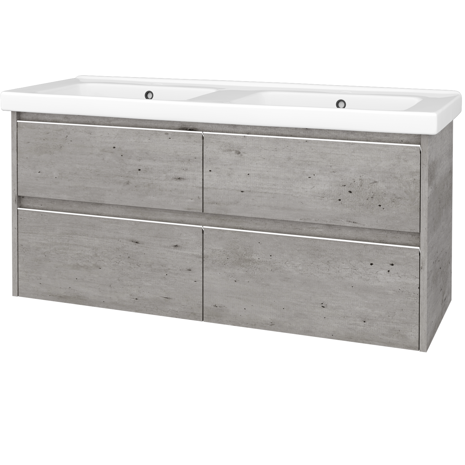 Závesná umývadlová skrinka (1200x370x500) s 1 zásuvkou, nikou a keramickým umývadlom Kube
