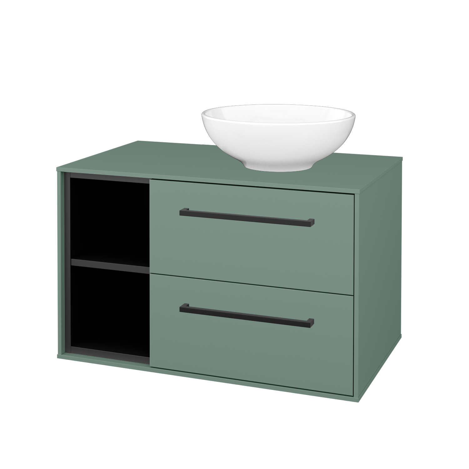 Závesná umývadlová skrinka (1200x370x500) s 1 zásuvkou, nikou a keramickým umývadlom Kube