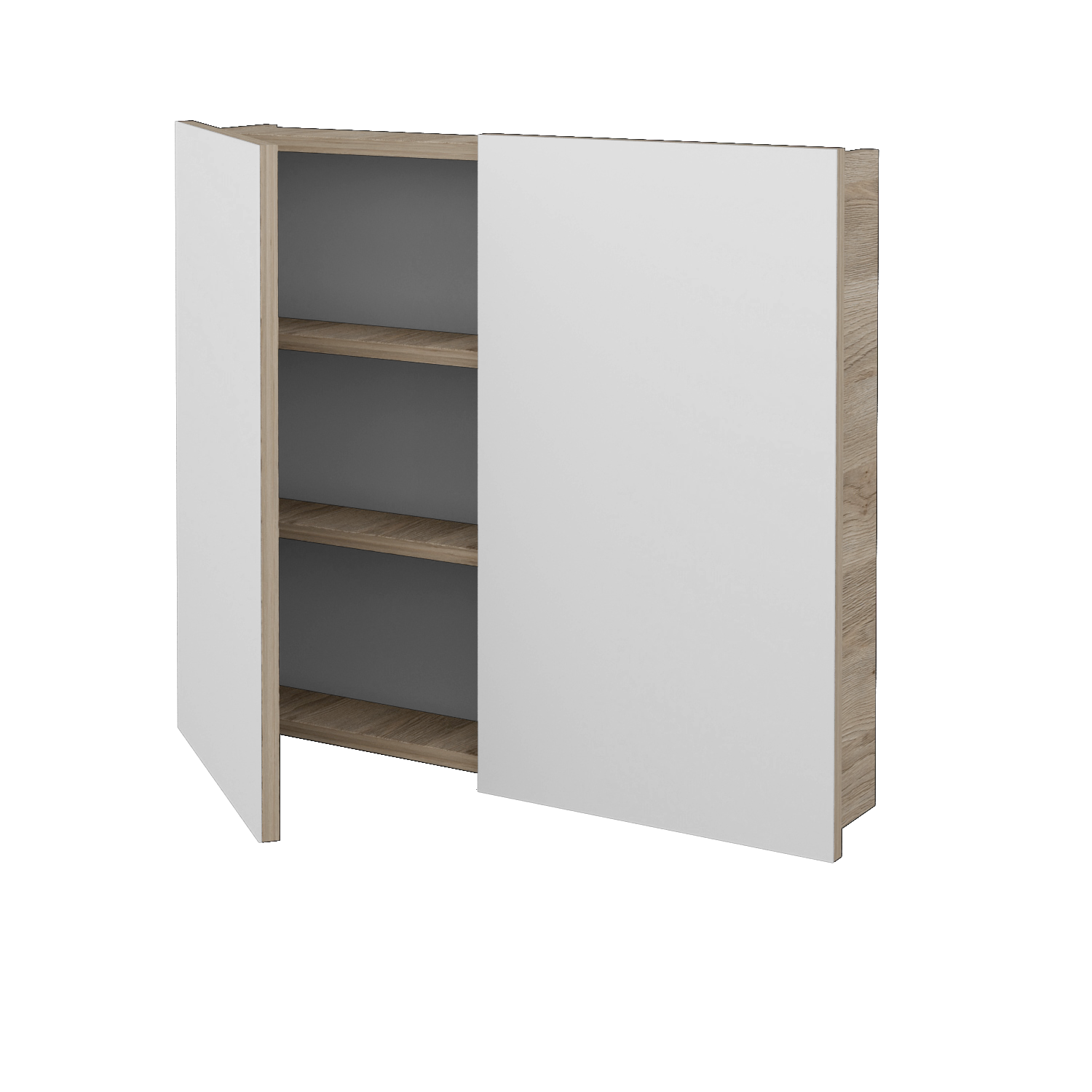 Dvojdverová galérka Q GA2 80 ponúka praktické riešenie s 2 drevenými výškovo nastaviteľnými policami, ktoré vám umožnia jednoducho prispôsobiť vnútorný priestor podľa svojich potrieb. Dvierka so zrkadlom sú osadené na kvalitnom kovaní s tlmeným dovieraním pre tichý a plynulý chod. Galérka Q nie je vybavená osvetlením, ale je navrhnutá tak, aby si každý mohol vybrať externé osvetlenie podľa svojho vkusu a požiadaviek priamo na našom webe.