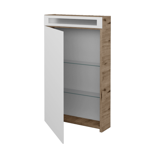 Prezrieť katalógJednodverová galérka (500x820x138) s LED osvetlením, 2 sklenenými policami a možnosťou ľavého alebo pravého otvárania Zobraziť viac