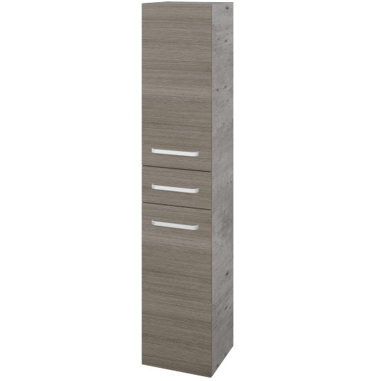 Závesná vysoká skriňa DOS SVD2Z 35 je rozdelená dvierkami na polovicu. V každej časti nájdete 2 výškovo polohovateľné sklenené police. Uprostred skrinky je tiež zásuvka, ktorá je svojou veľkosťou a prístupnosťou ideálna na uloženie každodenných maličkostí. Vysoká skriňa v kúpeľni predstavuje mnoho úložného priestoru aj napriek malým rozmerom. Smer otvárania dvierok skrinky si môžete zvoliť pri objednávke, rovnako ako úchytky, ktoré budú najlepšie sedieť k ďalšiemu vybaveniu kúpeľne.