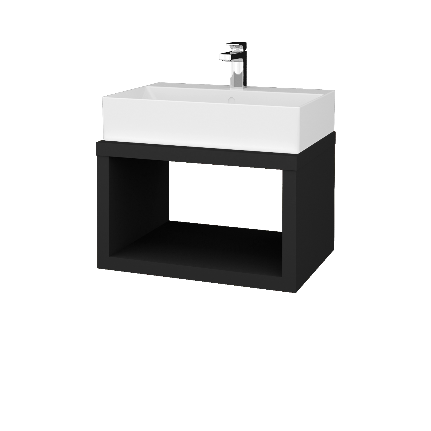 Prezrieť katalógZávesná umývadlová skrinka o šírke 60 cm s otvorenou nikou a keramickým umývadlom Kube Zobraziť viac
